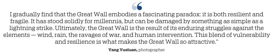 Through his lens, these remnants become human testaments — symbols of endurance and memories. "Maybe through the silent photos," Yang says, "people can see more than what they read in a history textbook."