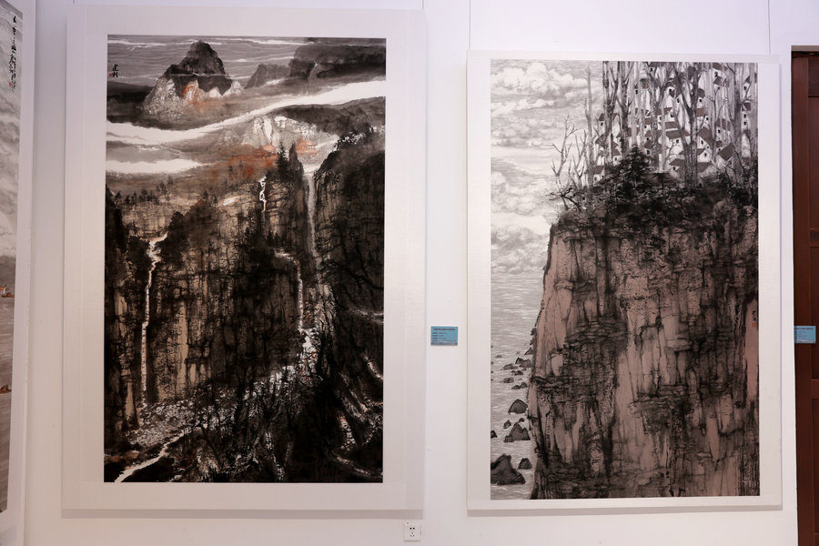 The exhibition includes landscapes and flower-and-bird paintings, about 40 percent of which have previously been shown in national-level art exhibits.