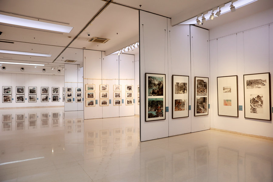 Traditional Chinese paintings by artist Liu Liyong and his students are exhibited at the Shijiazhuang Art Museum. [Photo provided to chinadaily.com.cn]