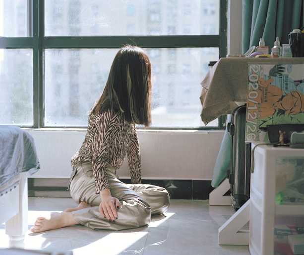 In a quiet corner of a Shanghai library, photographer Le Ziyi has placed pictures of young people taken by his lens at a distance where one must step closer to see them clearly.