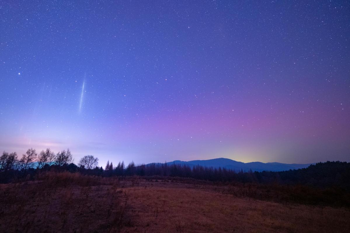 This photo taken on Nov 12, 2025 shows the aurora seen in Yabuli town of Shangzhi city, Northeast China's Heilongjiang province. [Photo/Xinhua]