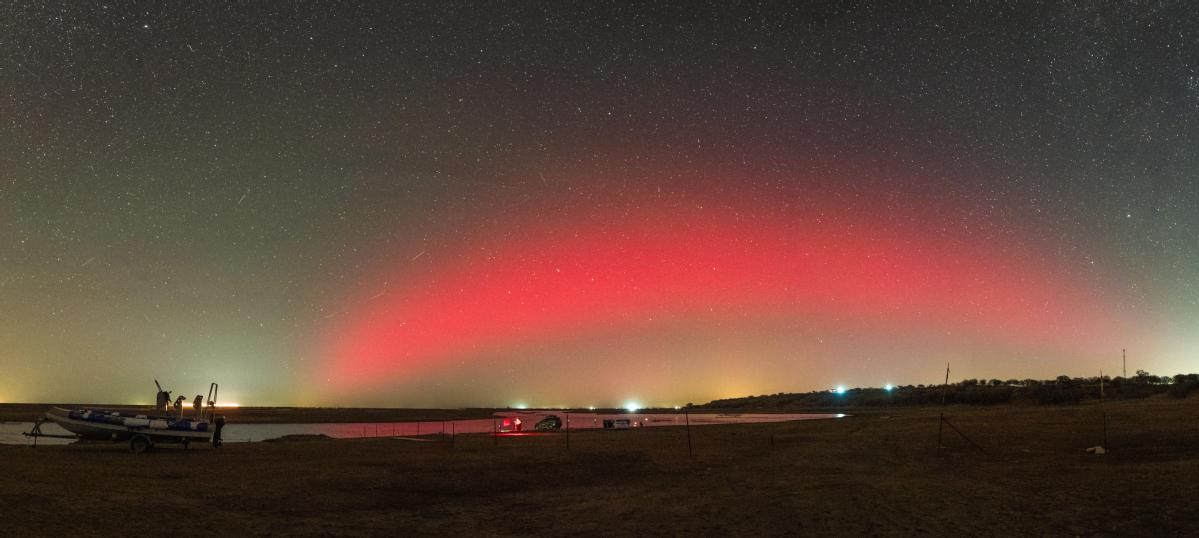 This stitched photo taken on Nov 12, 2025 shows the aurora seen in Daqing city, Northeast China's Heilongjiang province. [Photo/Xinhua]
