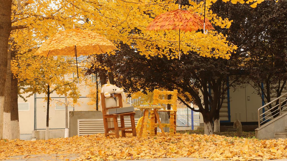 The crimson-and-gold hues of autumn have long inspired poets and artists, but at the Dalian University of Foreign Languages in Dalian, Liaoning province, it is the campus cleaning staff who are stealing the spotlight with umbrellas, chairs, and tables adorned with ginkgo leaves, drawing crowds of students and lighting up social media.