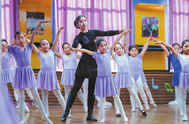 As the youngest dancer in the troupe, Esnil teaches primary school students traditional dances in Sonid Right Banner. MA JINRUI/XINHUA
