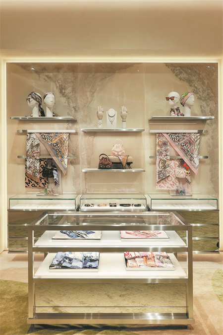 The second floor houses the brand's carefully curated ready-to-wear clothing, footwear and accessories collections for men and women. There is also an intimate VIP lounge that provides a relaxing and exclusive shopping experience.