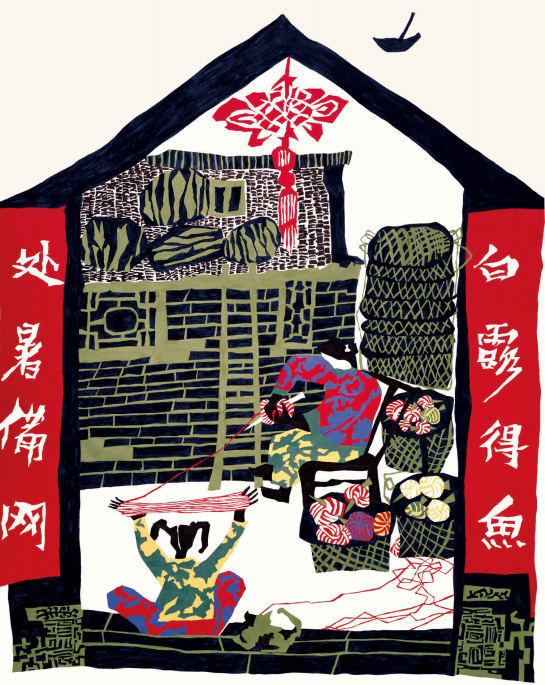 Today, the bravery of these fishermen becomes the subject of a painting on show at the National Art Museum of China in Beijing, by village artists from Zhoushan.