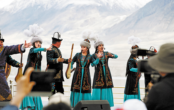 A performance of the epic Manas opens a tourism event in the Kizilsu Kirgiz autonomous prefecture, Xinjiang Uygur autonomous region, on May 19, 2024.[Photo by Sun Tingwen/China News Service]