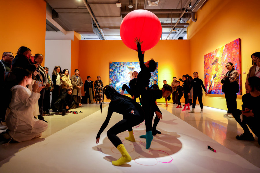 Professionals from education, charity foundations, and creative and healthcare industries discussed how the fine arts and associated fields can benefit people's well-being. It brought an end to Jia Wei's exhibition. [Photo provided to chinadaily.com.cn]