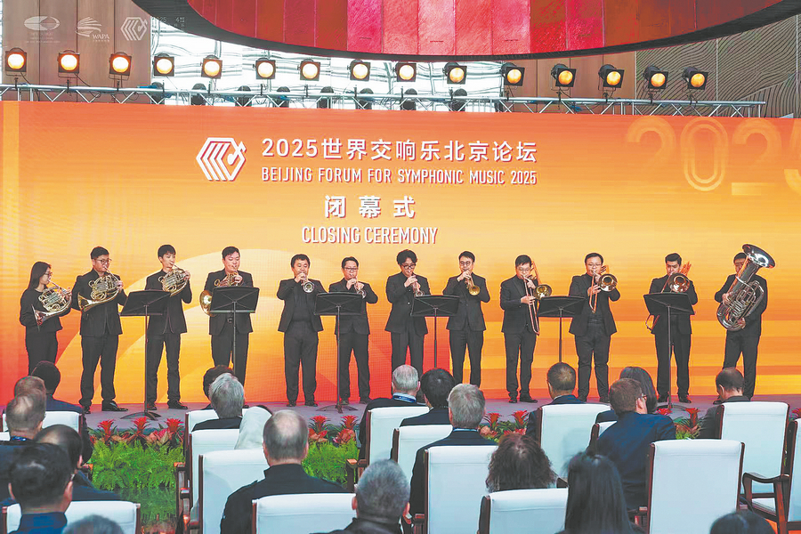 Musicians of the China NCPA Orchestra perform Festive Overture by Russian composer Dmitri Shostakovich, at the closing ceremony of the 2025 Beijing Forum for Symphonic Music last Friday. CHINA DAILY