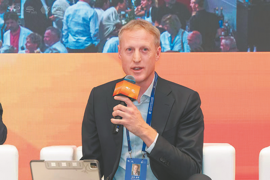Michael Fuller, head of international touring and projects for the Verbier Festival Chamber Orchestra gives a speech during the 2025 Beijing Forum for Symphonic Music. CHINA DAILY