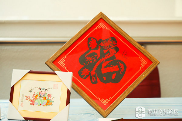 Scholars, representatives from cultural institutions and members who are interested in the revival of cultural traditions attend the Second Spring Festival Culture Forum, held at Beijing Normal University on Sunday. Drum beating, works of handicrafts and creativity products inspired by Spring Festival were all on display. [Photo provided to chinadaily.com.cn]