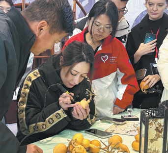 Cao Guangyao, who has practiced gourd pyrography for 12 years, said he was impressed by the participants' concentration as they tried the craft, which demands precise control of temperature, hand pressure, and speed. A South Korean student inscribed "South Korea" and "China", with a heart between them.