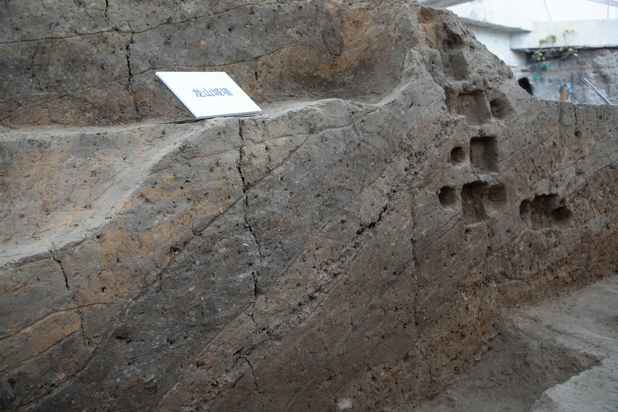 Remains of a city wall from the Longshan culture, discovered at the southwest site at Daming Lake. [Photo by Xu Zhou for chinadaily.com.cn]