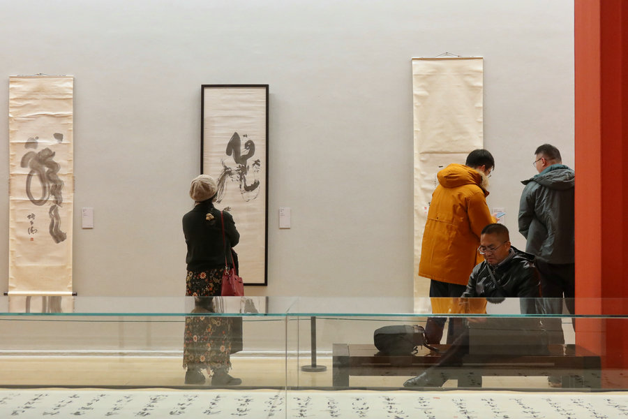 An exhibition now on at the National Art Museum of China celebrates Sze Chi-ching's upcoming 90th birthday and his devotions to Chinese calligraphy. [Photo by Jiang Dong/China Daily]