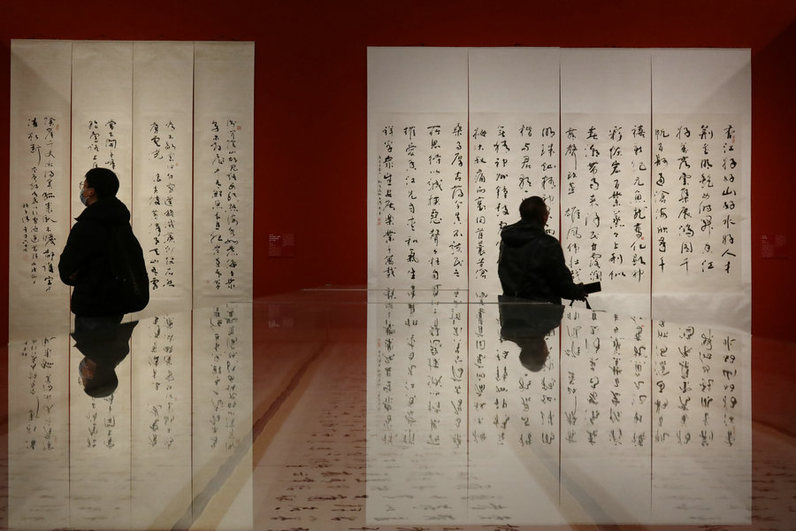 An exhibition now on at the National Art Museum of China celebrates Sze Chi-ching's upcoming 90th birthday and his devotions to Chinese calligraphy. [Photo by Jiang Dong/China Daily]