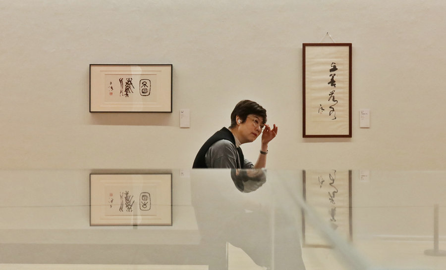 An exhibition now on at the National Art Museum of China celebrates Sze Chi-ching's upcoming 90th birthday and his devotions to Chinese calligraphy. [Photo by Jiang Dong/China Daily]