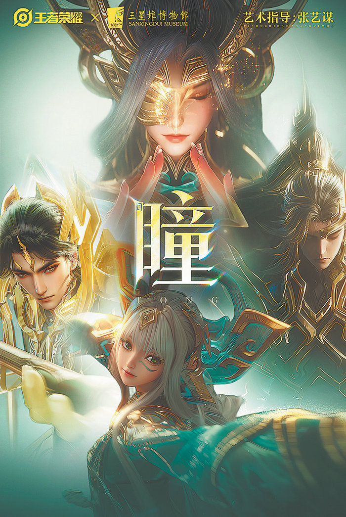 Mobile game Honor of Kings has designed new character skins based on Sanxingdui culture, highlighting the eyes. [Photo provided to China Daily]