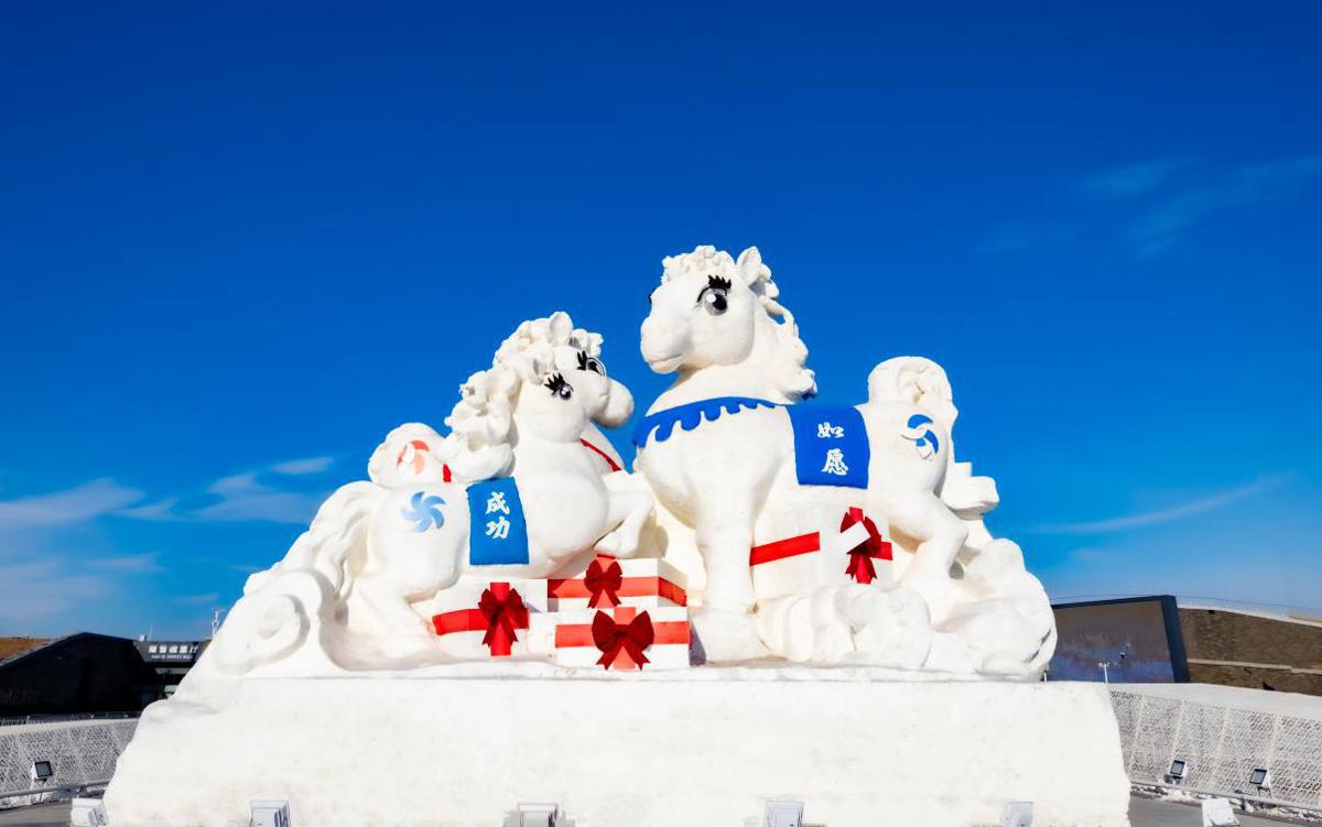 Various ice and snow sculptures of horses are ready to take the stage in the icy kingdom, showcasing the progressive spirit symbolized by the horse while conveying New Year wishes of success and good fortune.