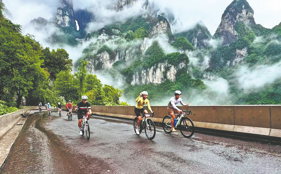 Against the backdrop of towering, otherworldly sandstone pillars and peaks at Zhangjiajie National Forest Park, Hunan province, a group of inbound tourists stands transfixed, their eyes soaking in the sweeping, mist-shrouded landscape.