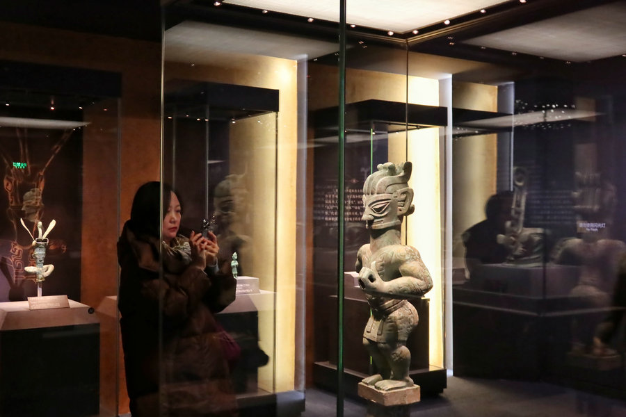 Twin Stars Illuminating the World reveals a glimpse of the enigmatic Sanxingdui and Jinsha relic sites of the ancient Shu kingdom at the National Museum of China in Beijing. [Photo by Jiang Dong/chinadaily.com.cn]