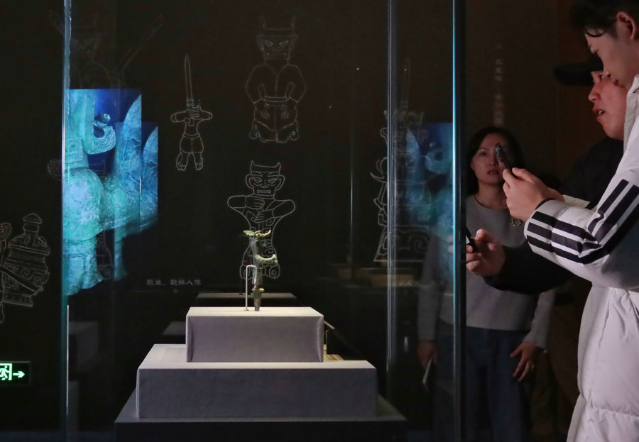 Twin Stars Illuminating the World reveals a glimpse of the enigmatic Sanxingdui and Jinsha relic sites of the ancient Shu kingdom at the National Museum of China in Beijing. [Photo by Jiang Dong/chinadaily.com.cn]