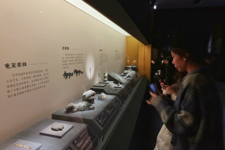 Twin Stars Illuminating the World reveals a glimpse of the enigmatic Sanxingdui and Jinsha relic sites of the ancient Shu kingdom at the National Museum of China in Beijing. [Photo by Jiang Dong/chinadaily.com.cn]