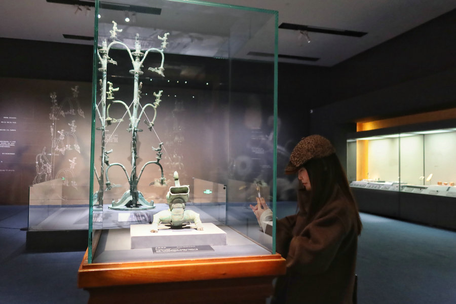 Twin Stars Illuminating the World reveals a glimpse of the enigmatic Sanxingdui and Jinsha relic sites of the ancient Shu kingdom at the National Museum of China in Beijing. [Photo by Jiang Dong/chinadaily.com.cn]