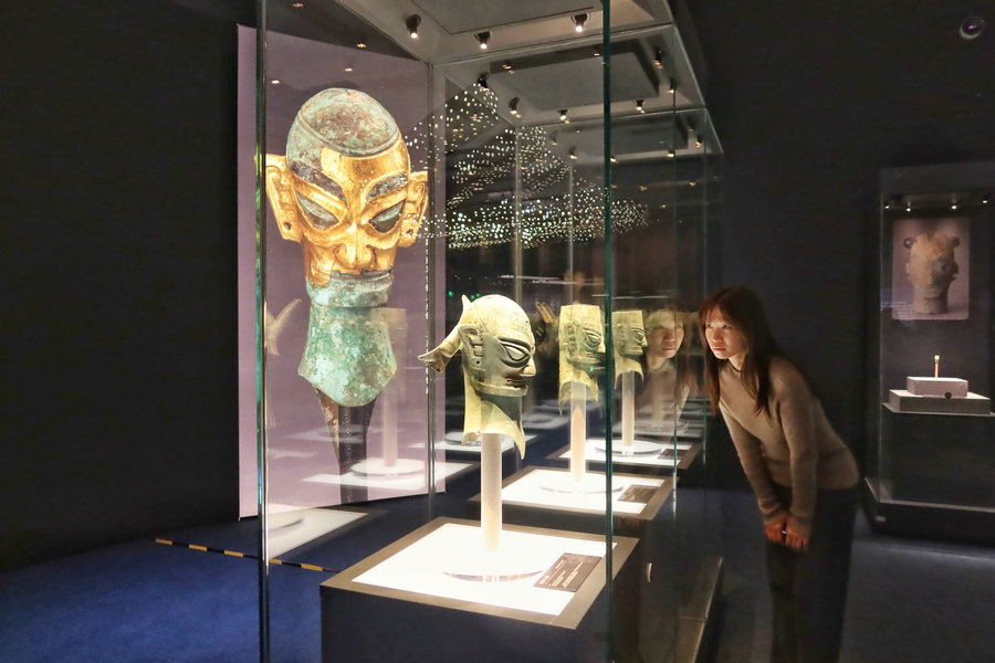 Twin Stars Illuminating the World reveals a glimpse of the enigmatic Sanxingdui and Jinsha relic sites of the ancient Shu kingdom at the National Museum of China in Beijing. [Photo by Jiang Dong/chinadaily.com.cn]