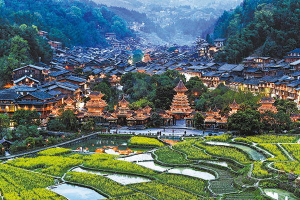 A view of the Zhaoxing Dong ethnic village in Liping county, Guizhou, in March.[Photo/Xinhua]