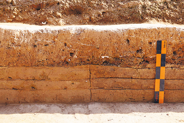 Evidence of rammed earth block division indicates that the construction of the Epang Palace's foundation was carried out in segments.[Photo provided to China Daily]