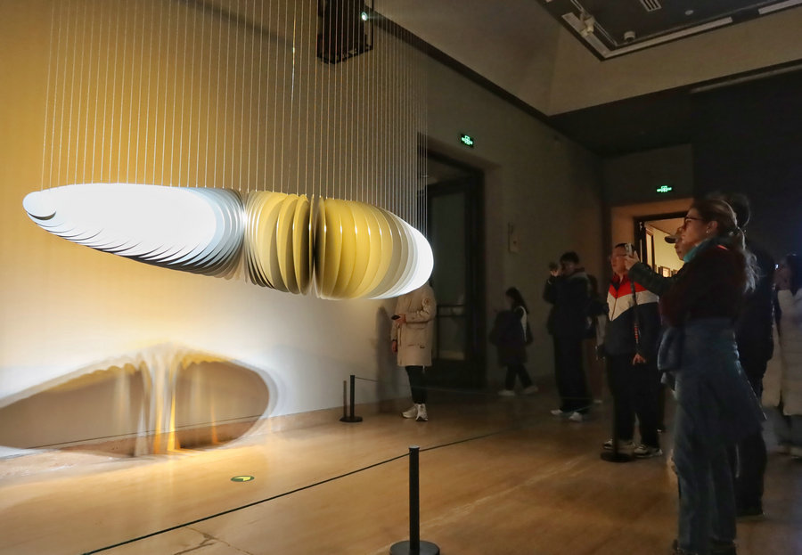Future Poetics, at the National Art Museum of China, brings together eight artists whose works explore the multiple expressions of human civilization. [Photo by Jiang Dong/chinadaily.com.cn]