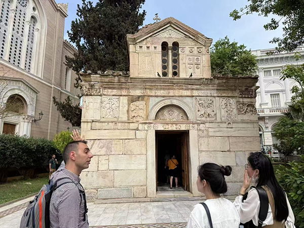 Westra introduces the Church of St. Eleutherius in Athens to Chinese students last year.[Photo provided to China Daily]