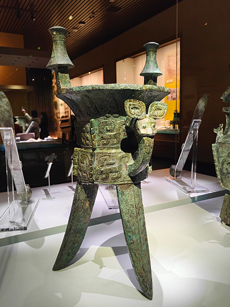 A bronze drinking vessel and a bronze wine container from the late Shang Dynasty (c. 16th century-11th century BC) Yinxu Ruins in Anyang, Henan province.[Photo by Wang Ru/China Daily]