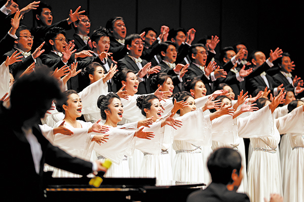 The China NCPA Chorus performs during its 16th-anniversary concert in Beijing on Dec 5.[Photo provided to China Daily]