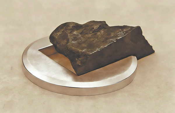 Works from Poetic Inquiry, the latest series by Sun Longben, which features natural stones embedded into 3D-printed sculptures. CHINA DAILY