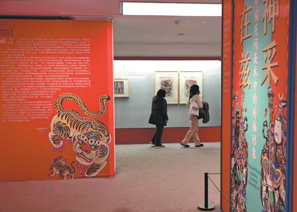 More than 40 selected examples of this customary variety are on show until Sunday in the Vivid and Vibrant: Auspicious Imagery in Chinese Folk Art exhibition at the National Art Museum of China in Beijing. While it offers glimpses into the museum's rich collection of folk handicrafts, it unfolds a vigorous panorama of creative grassroots aesthetics — people farming in the fields or chatting after work — that have been passed down through the centuries.