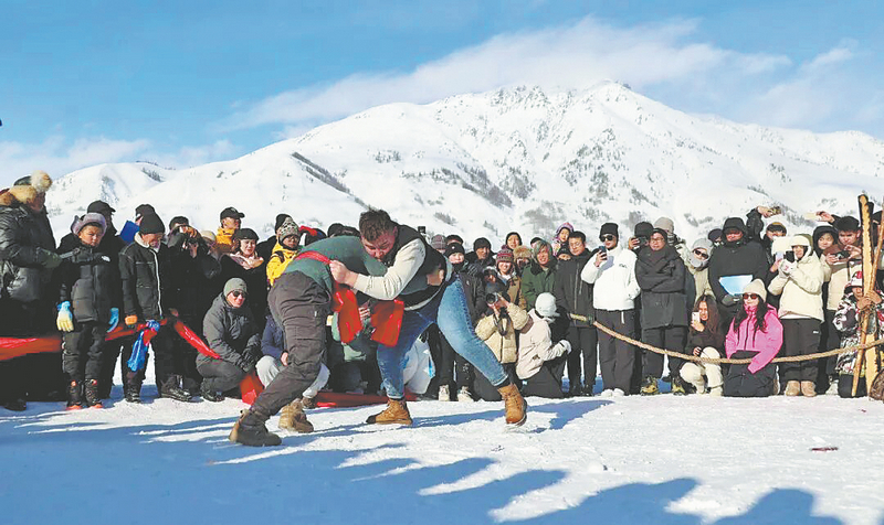 Villagers engage in traditional ethnic wrestling competitions in Hemu, Altay, Xinjiang Uygur autonomous region. CHINA DAILY