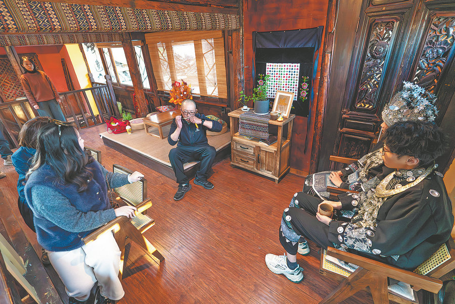 He teaches a customer how to play the Chinese mouth harp at his music club. [Photo by Gao Yongwei/Wang Guansen/Jiang Wenyao/Xinhua]