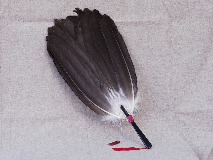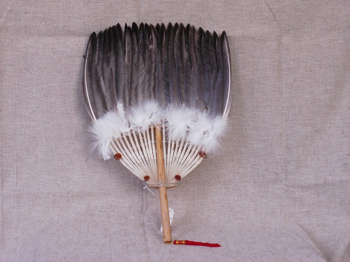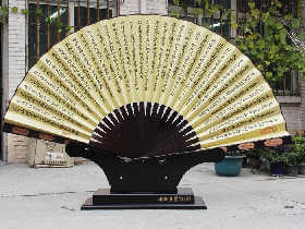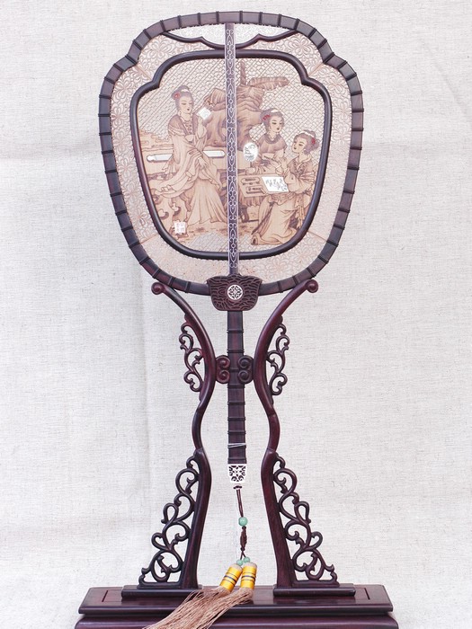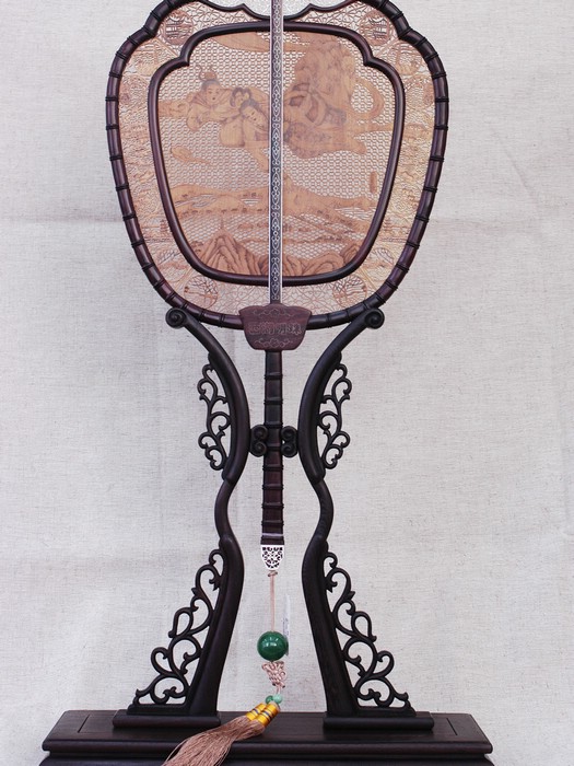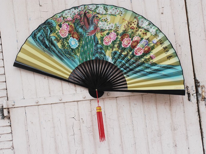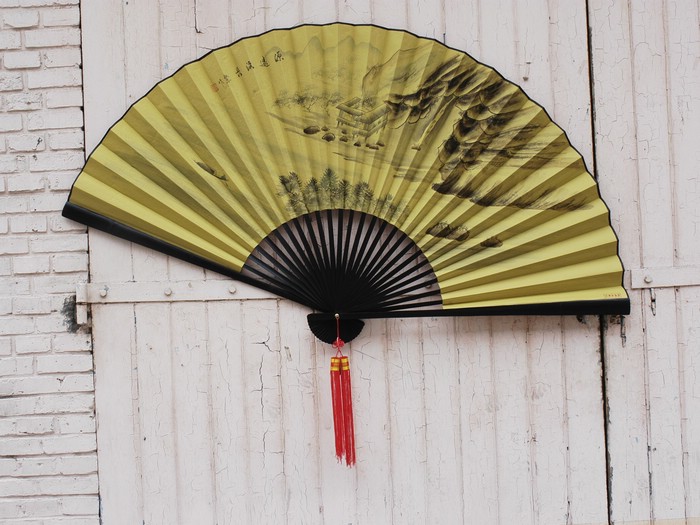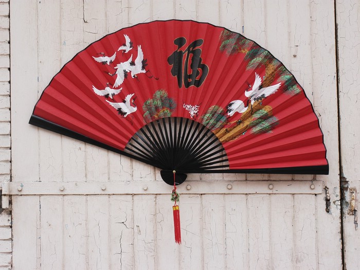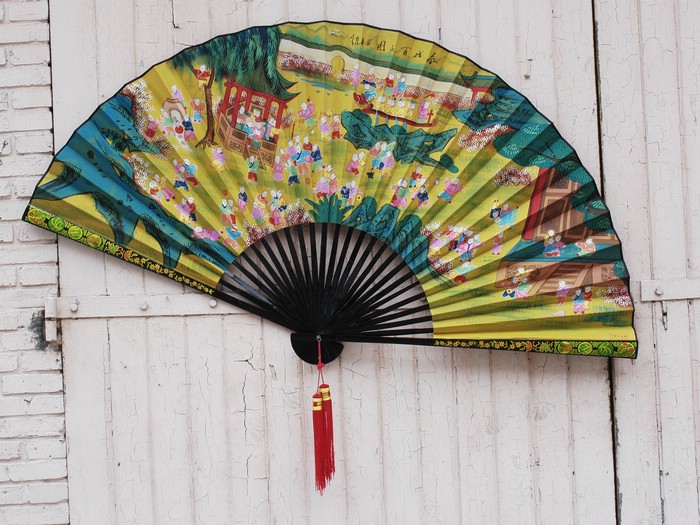 Large Bamboo Silk Fan with Painting and Red Character “Felicity”