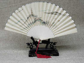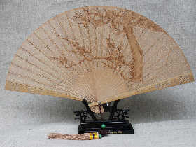 Sandalwood Fan with a Pyrographed Scene from Dream of the Red Mansion
