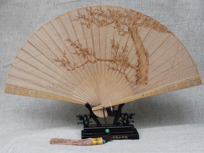 Openwork Sandalwood Fan with Pyrographed Plum Blossom