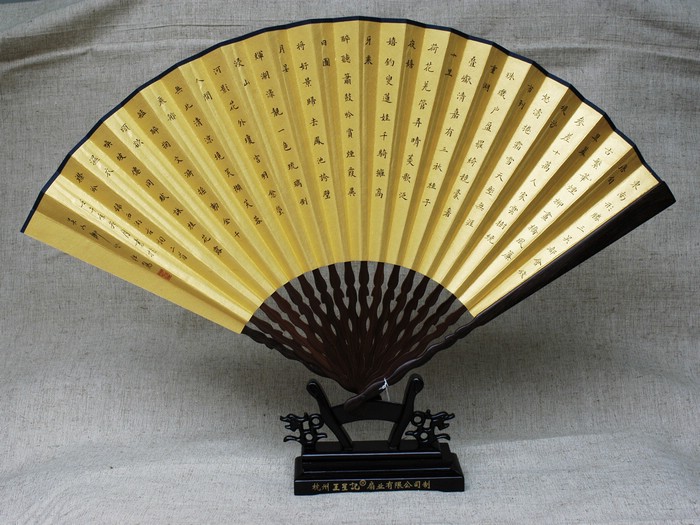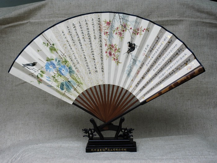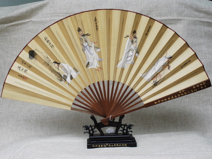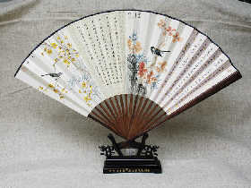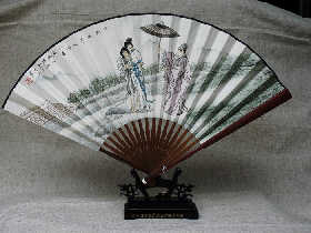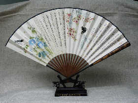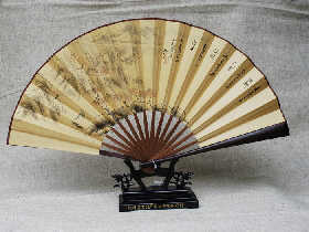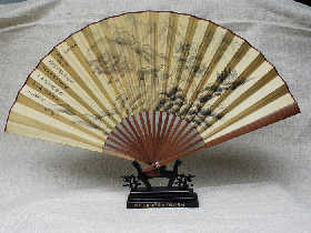 Painted Silk Fan (outmost slats: mahogany; inner slats: bamboo)
