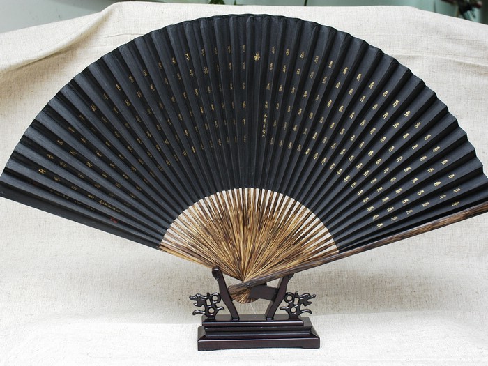 Fan with One Hundred Characters of “Longevity”(facing: gold; slats: ebony)