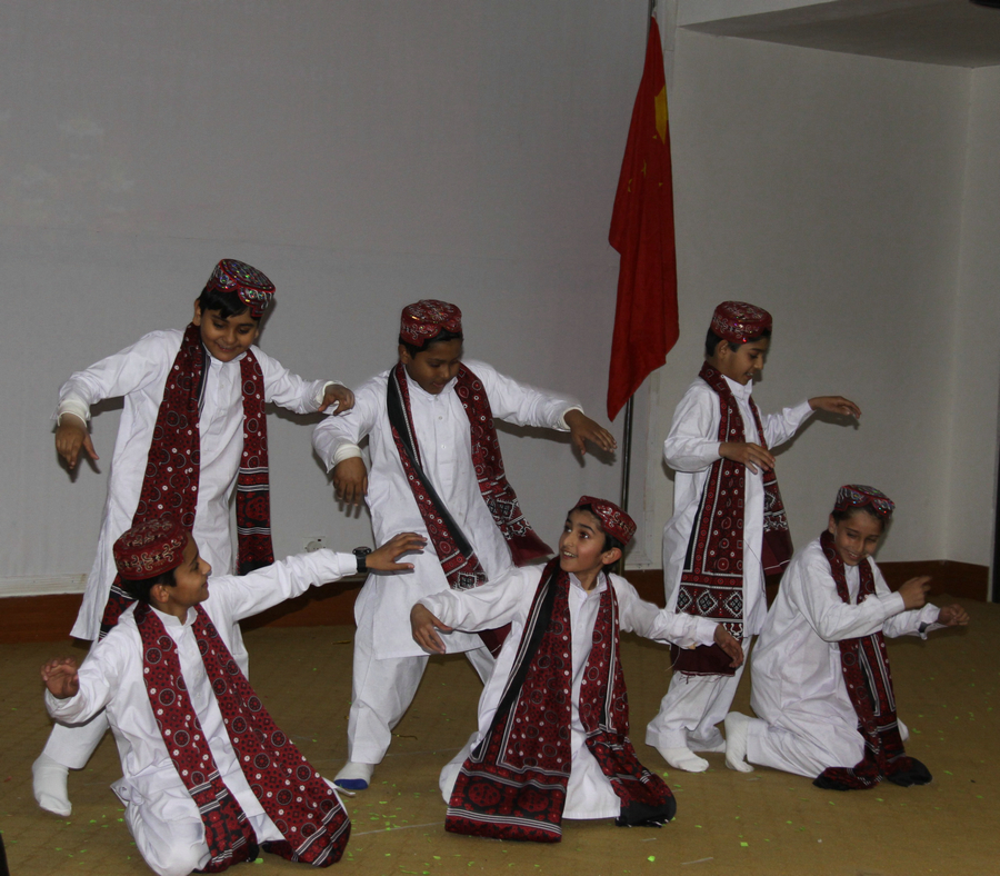 巴基斯坦城市学校学生表演传统民族舞蹈。[摄影:吾买尔江•买买提]