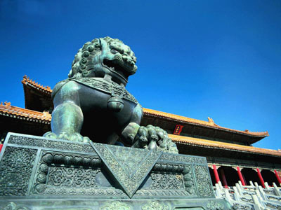 Dynasty (1368-1644) stone lions were placed in front of palaces, government