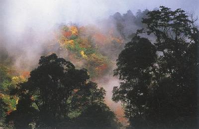 Erlang Mountain lies 50 kilometers to the west of Tianquan County of Sichuan Province, 3,437 meters above sea level. In May, azaleas flourish in red, blue, purple and white color on the mountain, attracting many beautiful butterflies dancing around. There is a view-watching platform on the mountain, which is actually a cliff with a deep valley below. Across the cliff there are ice peaks, the end of glaciers of ancient times. The rotes of the Qingyi River and springs along clear brooks can be heard through thick pine forest, and white clouds can be seen floating across the blue sky over the mountain, which adds peculiar traits to the scenery of Erlang Mountain.