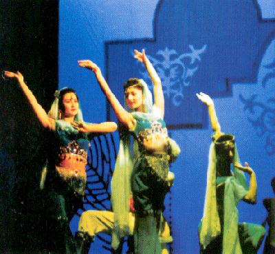 During the war times, in the smoke of gunpowder, the artists of the older generation of the Troupe performed operas The White-haired Girl, Yang Yong Renders Meritorious Service, Blood and Tears with Hatred and song and dance drama Brother and Sister Opening up Westland etc. Forty years and more, a large number of dances, music and operas known at home and abroad, e.g. Under the Grape Trellis, Tea with Milk Dance, The Night of the Grassland, A Remote Place, As Red as Two Brothers, Xinjiang Fine, The Most Beautiful is Our Xinjiang, Ode to Kunlun Mountain, In the Deep of Tianshan Mountain etc. have been created and performed. Members of the Art Troupe have paid performing visits many times to the countries of Egypt, Sudan, Ethiopia, Syria, Lebanon, Afghanistan, India, Burma, Russia, Kazakhstan, Czech, Slovak, Japan, Chile, Cuba, Turkey, Jordan, Morocco, Pakistan, etc., and the region of Hong Kong. Well-known artists-in-Residence include singers: Li Shuangjiang, Kerimu, Hamiti, Garmila, Xiamili, Baharguli, Dalielihan etc., dancers: Fang Jinji, Sun Ling, Yang Zuquan, He Mengdao, etc., composers: Wang Luoban, Tian Ge, Yan Picheng, Liu Shuming etc., words writers: Guo Zhengwei etc., modern opera performers: Kong Zhaotian, Chen Yingming, Li Yingjie etc., famous directors: Bai Zhenqing, Qiu Jixing, player: Li Datong, stage art designer: Yuan Chou, Liu Deheng etc.