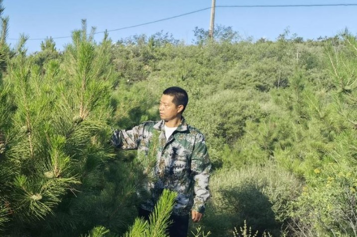 Bathed in summer sunlight, Niu Yuzhu, 52, starts his daily patrol of a forest farm in Zhuolu county, North China's Hebei province.
