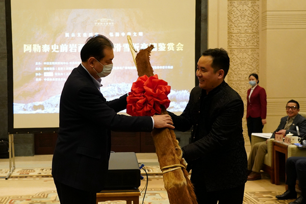 A symposium on the cultural value of the ancient rock carvings and fur ski in Altay prefecture, Northwest China's Xinjiang Uygur autonomous region, was held in the National Museum of China on Jan 20.