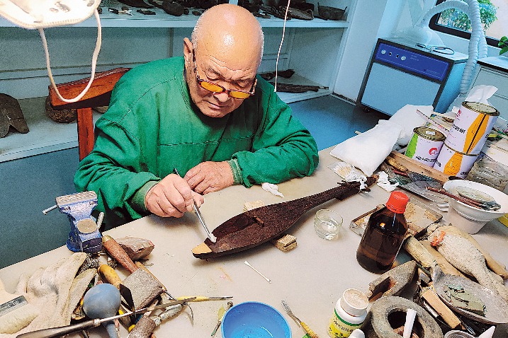Eleven years after Zhang Juncai, 72, a cultural relic restorer, retired from the Shanxi Archaeological Institute in Taiyuan, he is still breathing life into unearthed bronze ware, pottery, ironware, stoneware and frescoes.